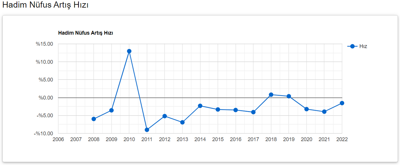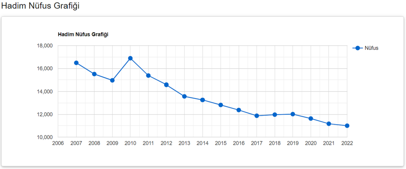 TÜİK’ in verilerine Hadim nüfusu 2022 yılına göre 10.999 oldu.