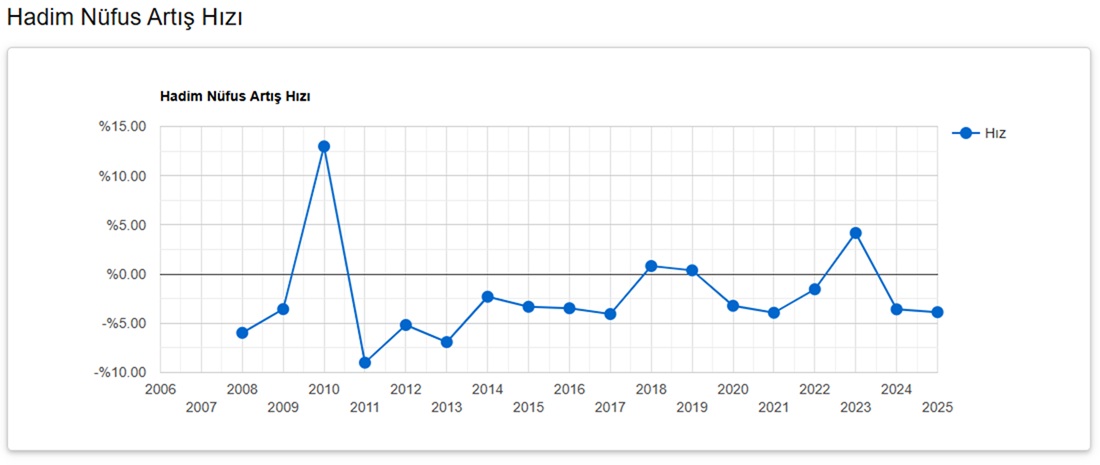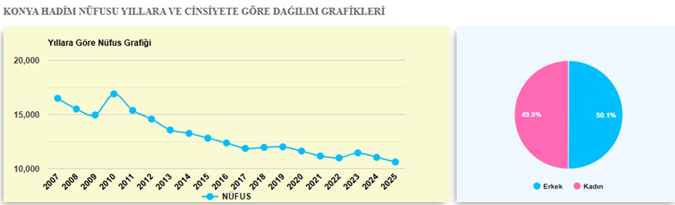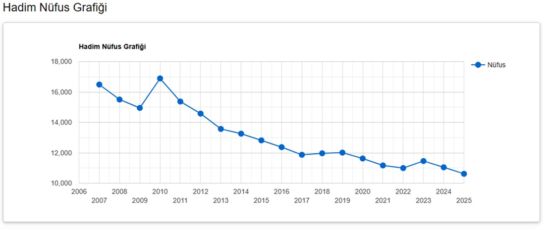 TÜİK’ in verilerine Hadim nüfusu 2025 yılına göre 10.620 oldu.