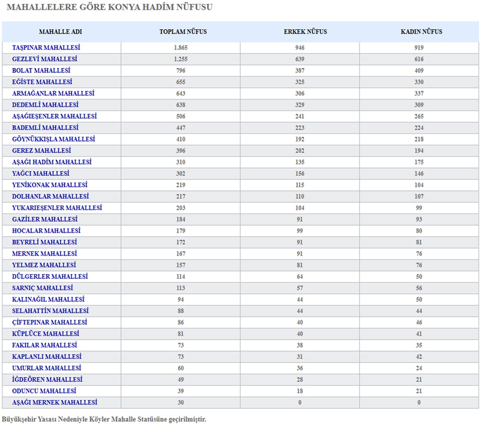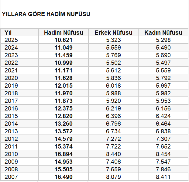 HADİM’ İN NÜFUSU BU YIL AZALDI